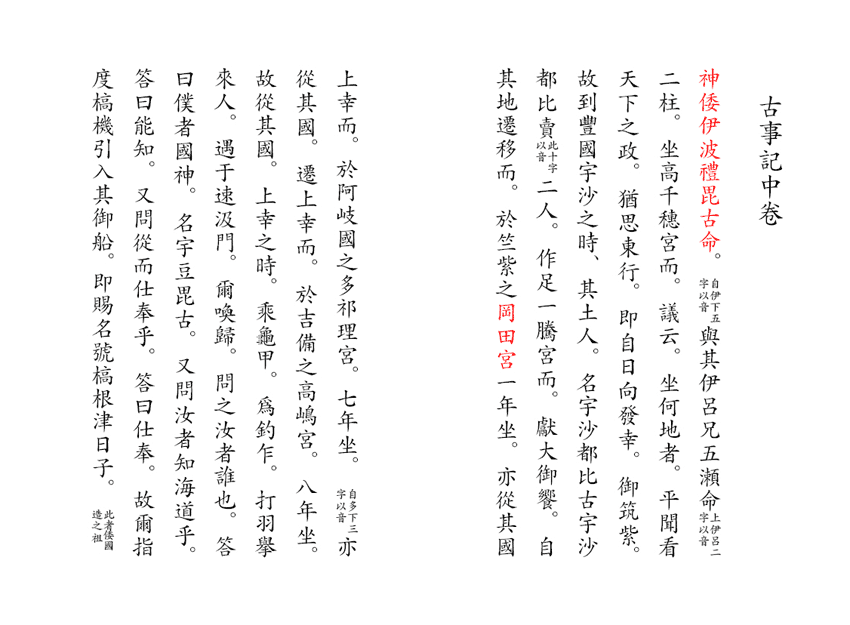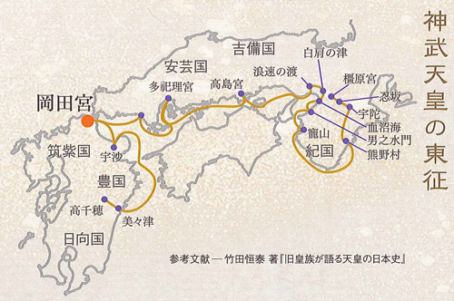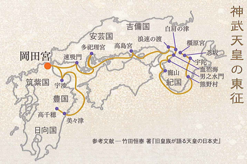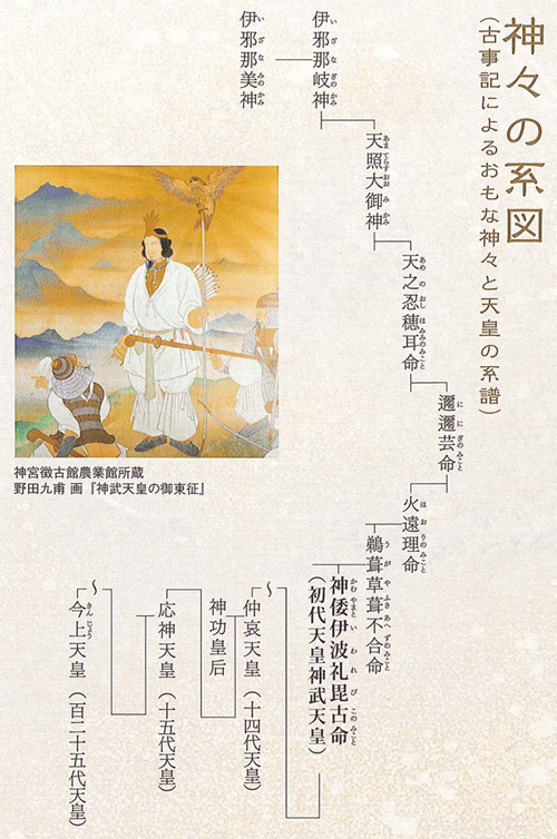 神武天皇日向国より東征の途次、当宮に詣り天神地祇の八神(八所神)を奉斎し、この地に留まり給う由「古事記」にあり。