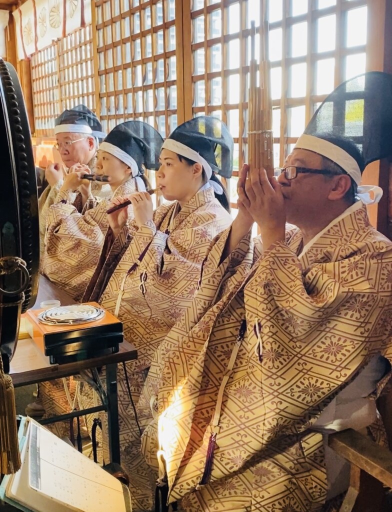 宮司・酉権禰宜・さくら権禰宜・ねずみ出仕・雅楽部3名・学生アルバイト(巫女)