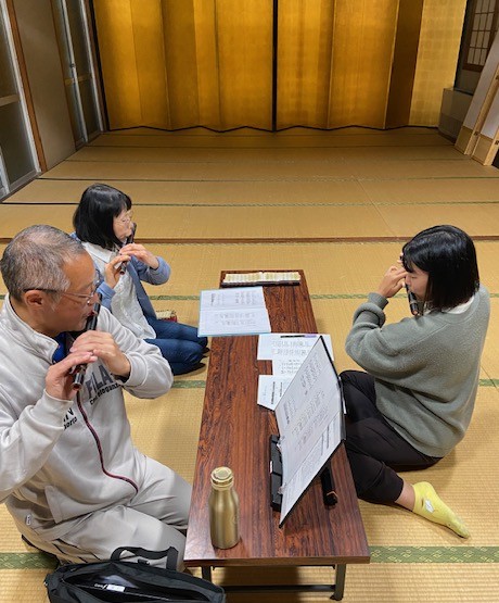 夜の部でも、みんなで越殿楽を演奏した後、新入部員を対象に越殿楽の1行目の唱歌、