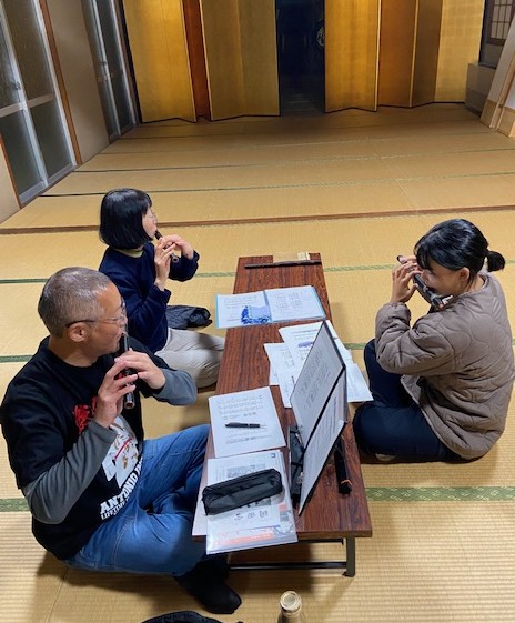 その後初級コースの方には「越殿楽」の1行目から2行目を繰り返し練習していただきました。