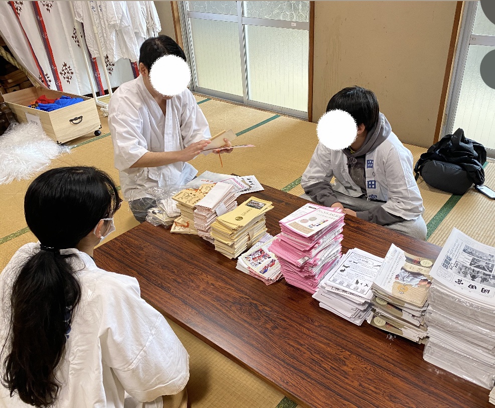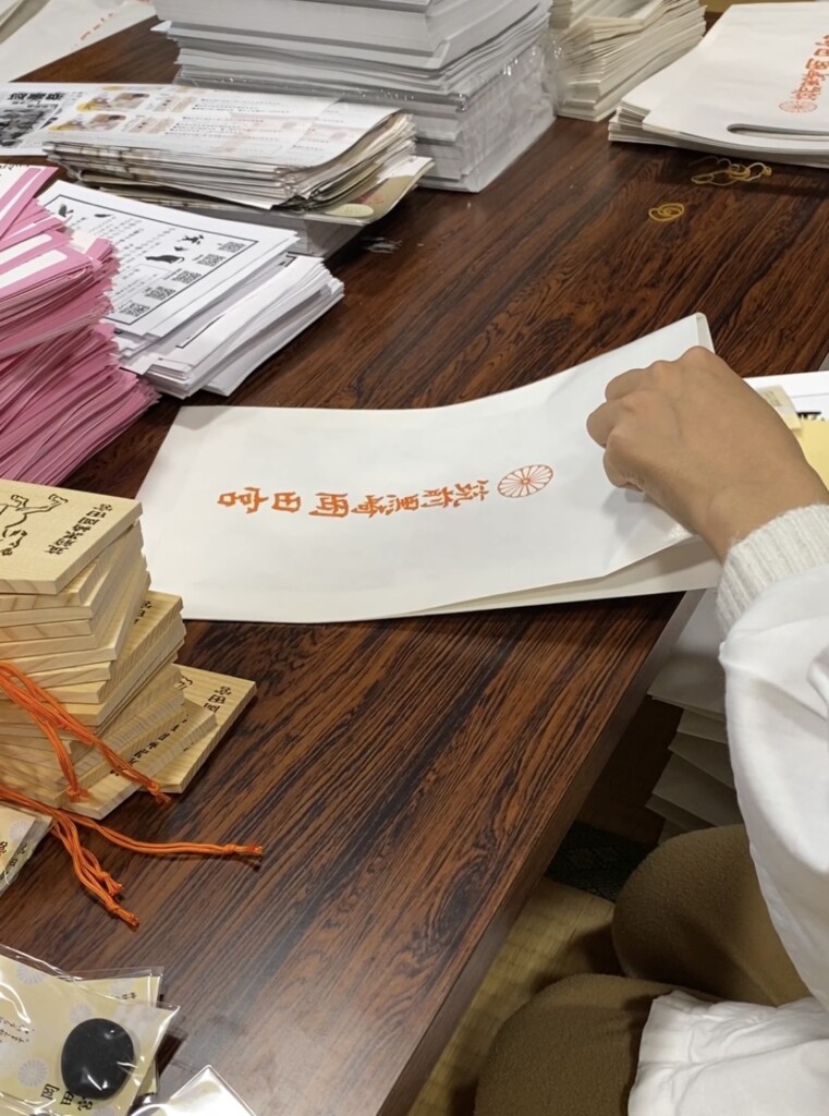 神社の由緒書きや社報、絵馬などを入れる作業です☆