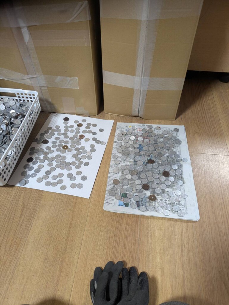 今回は、お正月の沢山の方々が挑戦した水占いの1円玉を回収しました。