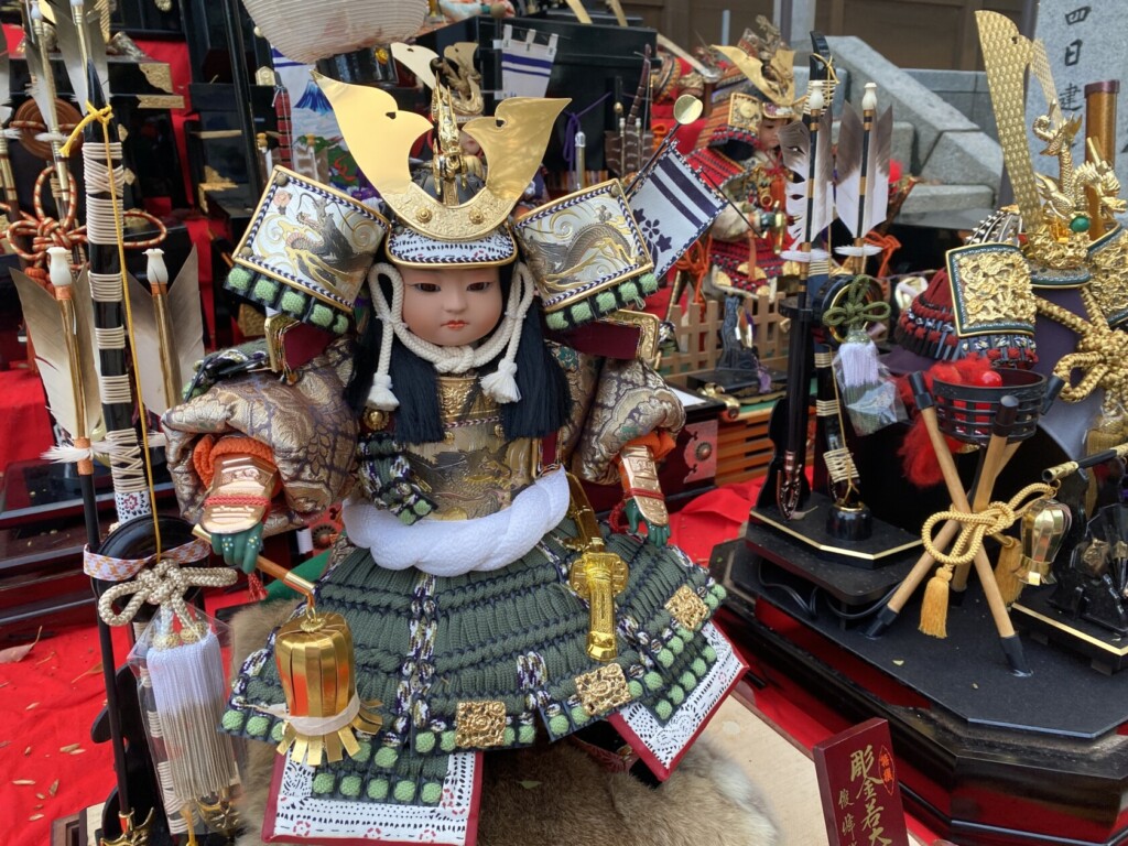 皆様に奉納いただきました兜・五月人形・羽子板・虎を