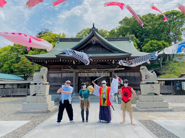 境内で岡田宮の三太郎が皆様をお迎えしております!